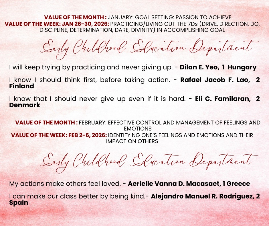 Throughout the weeks, our students engaged in meaningful experiences that encouraged them to move with purpose, stay committed to their goals, and take thoughtful action toward what they aim to achieve. Through reflection and practice, they learned that progress is built on consistency, courage, and a strong sense of purposeโguiding them to move forward with intention and confidence. At the same time, learners developed greater awareness of their inner experiences and how these influence their choices, behavior, and interactions with others.