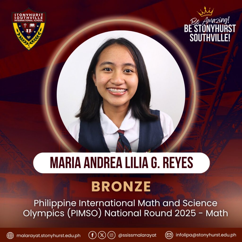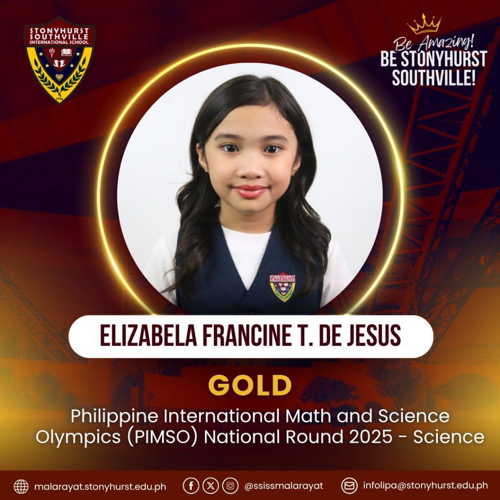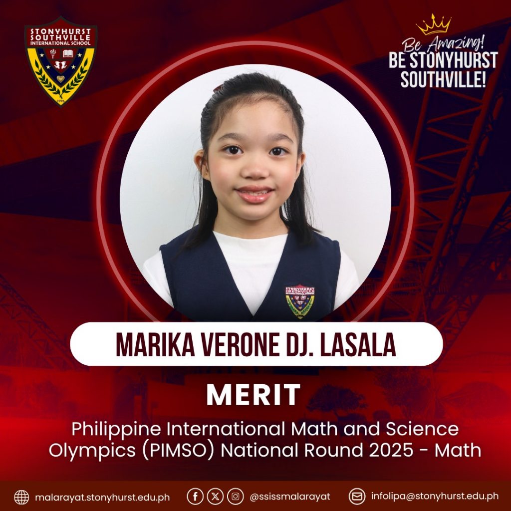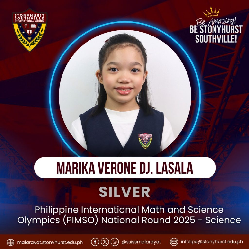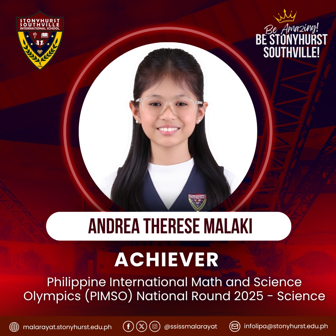 Stonyhurst Southville International School – Malarayat proudly celebrates our outstanding students for their remarkable achievement in the Philippine International Math and Science Olympics (PIMSO) โ€” excelling in both the Mathematics and Science categories! ๐Ÿ…๐Ÿ”ฌโž•