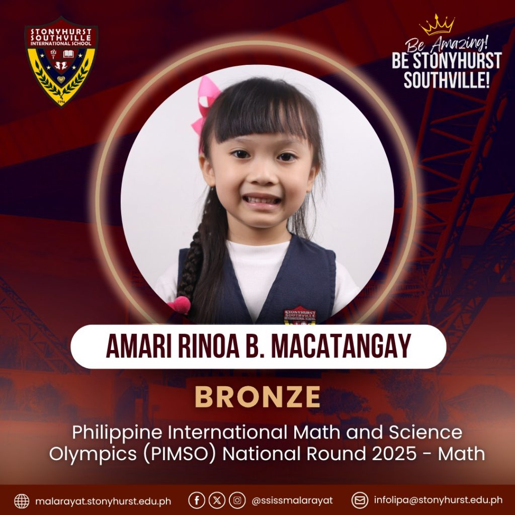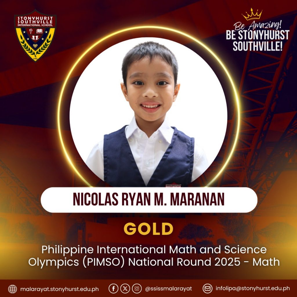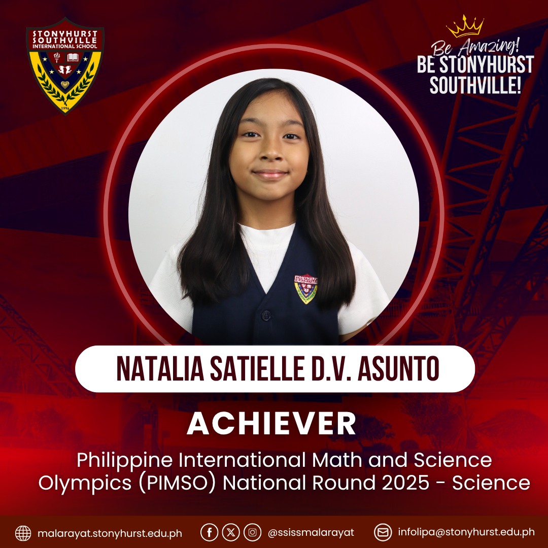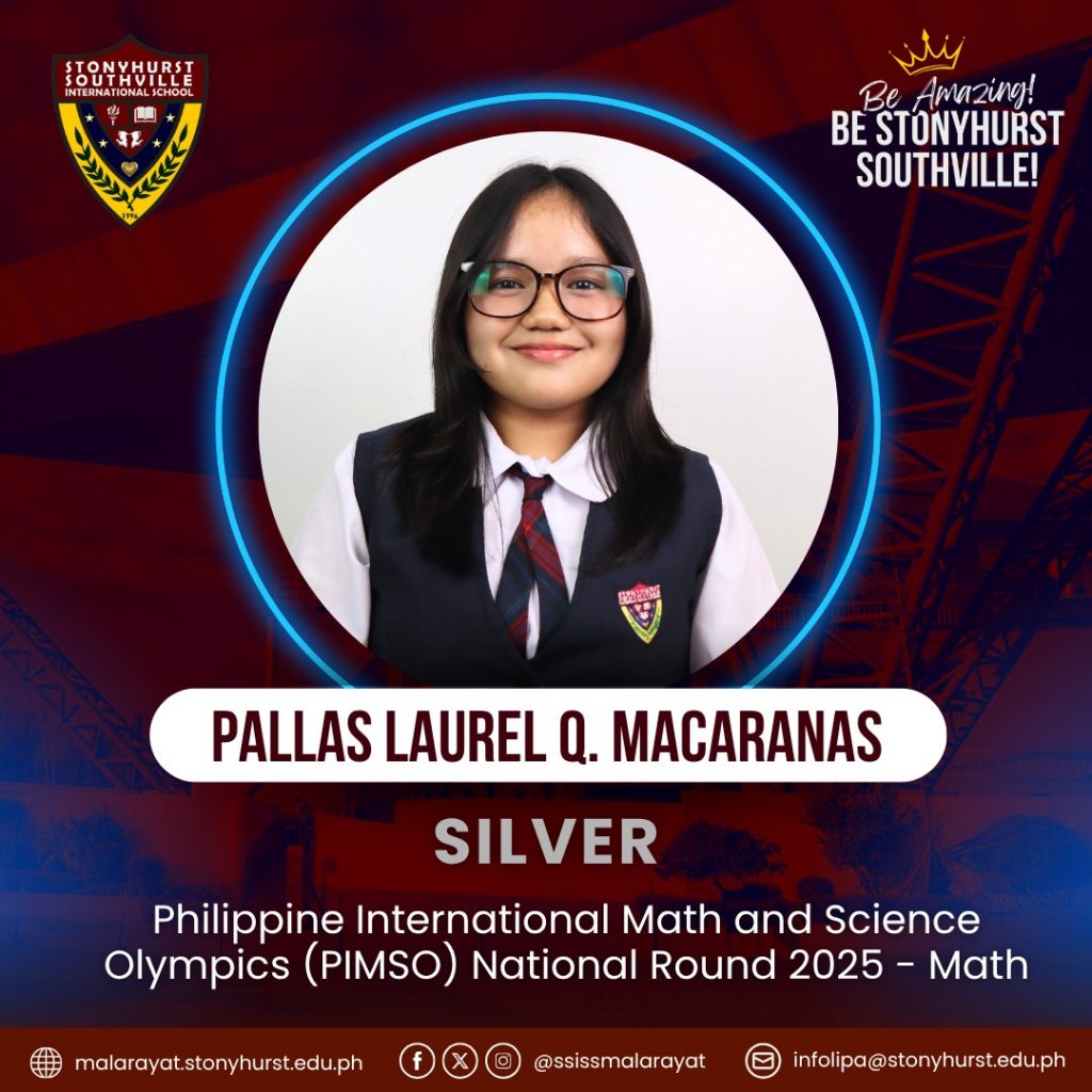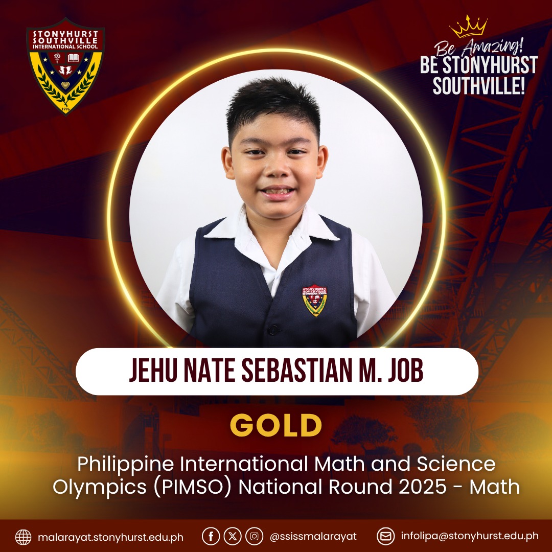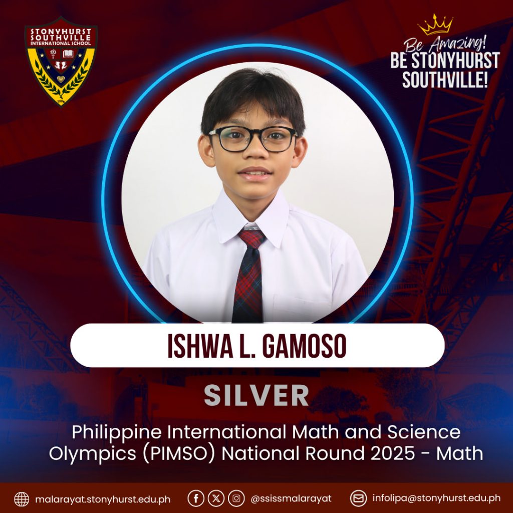 Stonyhurst Southville International School – Malarayat proudly celebrates our outstanding students for their remarkable achievement in the Philippine International Math and Science Olympics (PIMSO) โ€” excelling in both the Mathematics and Science categories! ๐Ÿ…๐Ÿ”ฌโž•