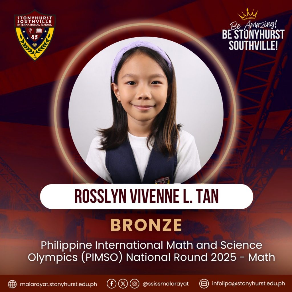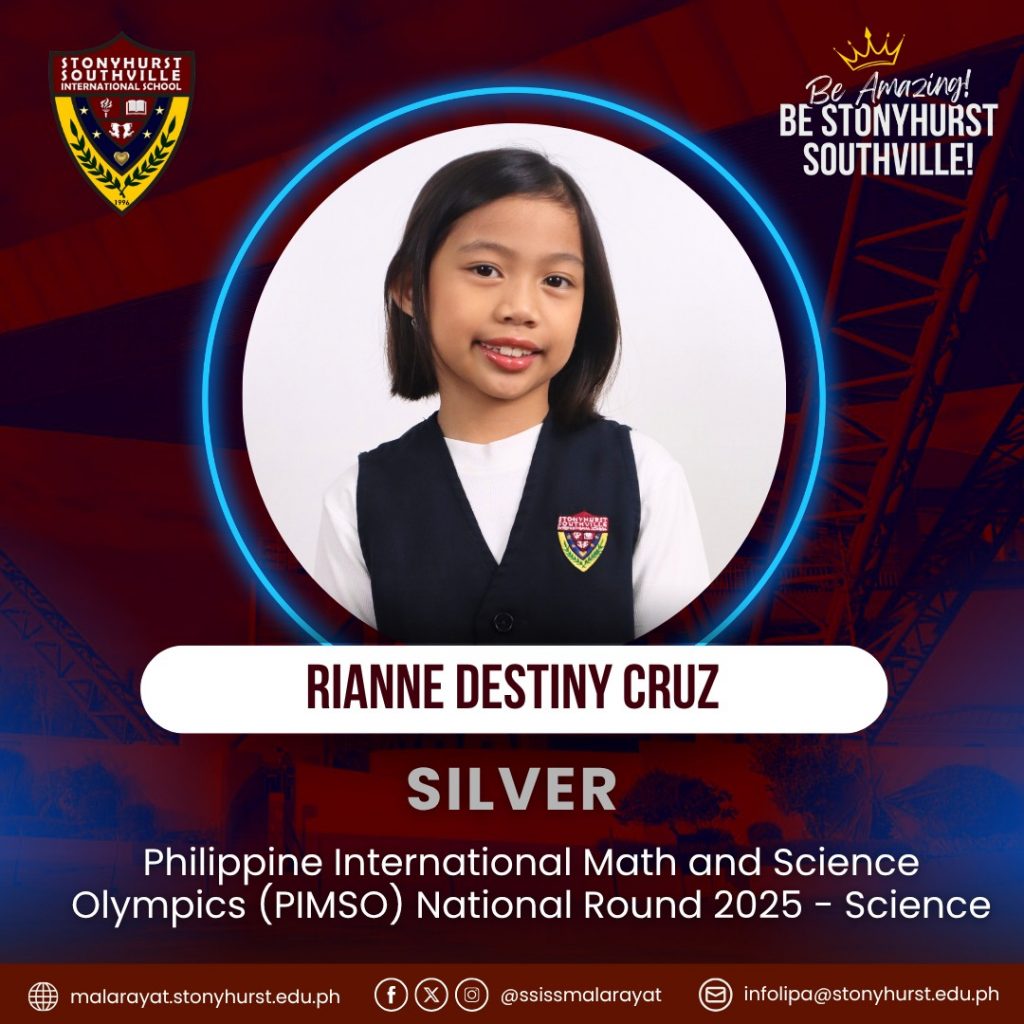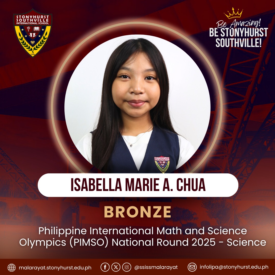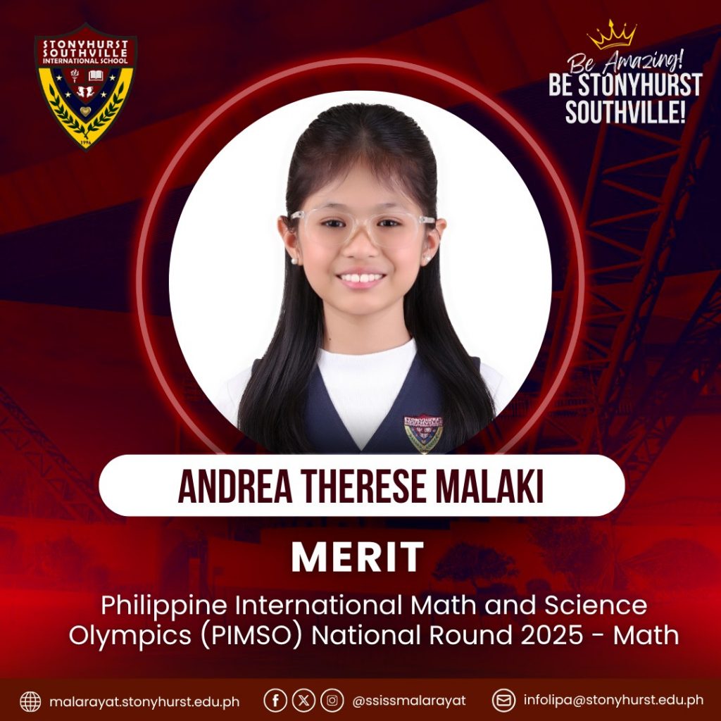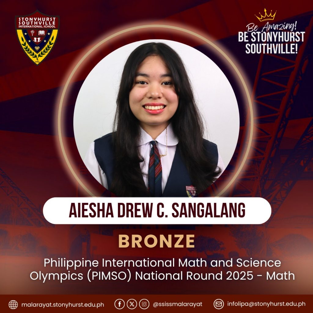Stonyhurst Southville International School – Malarayat proudly celebrates our outstanding students for their remarkable achievement in the Philippine International Math and Science Olympics (PIMSO) โ€” excelling in both the Mathematics and Science categories! ๐Ÿ…๐Ÿ”ฌโž•