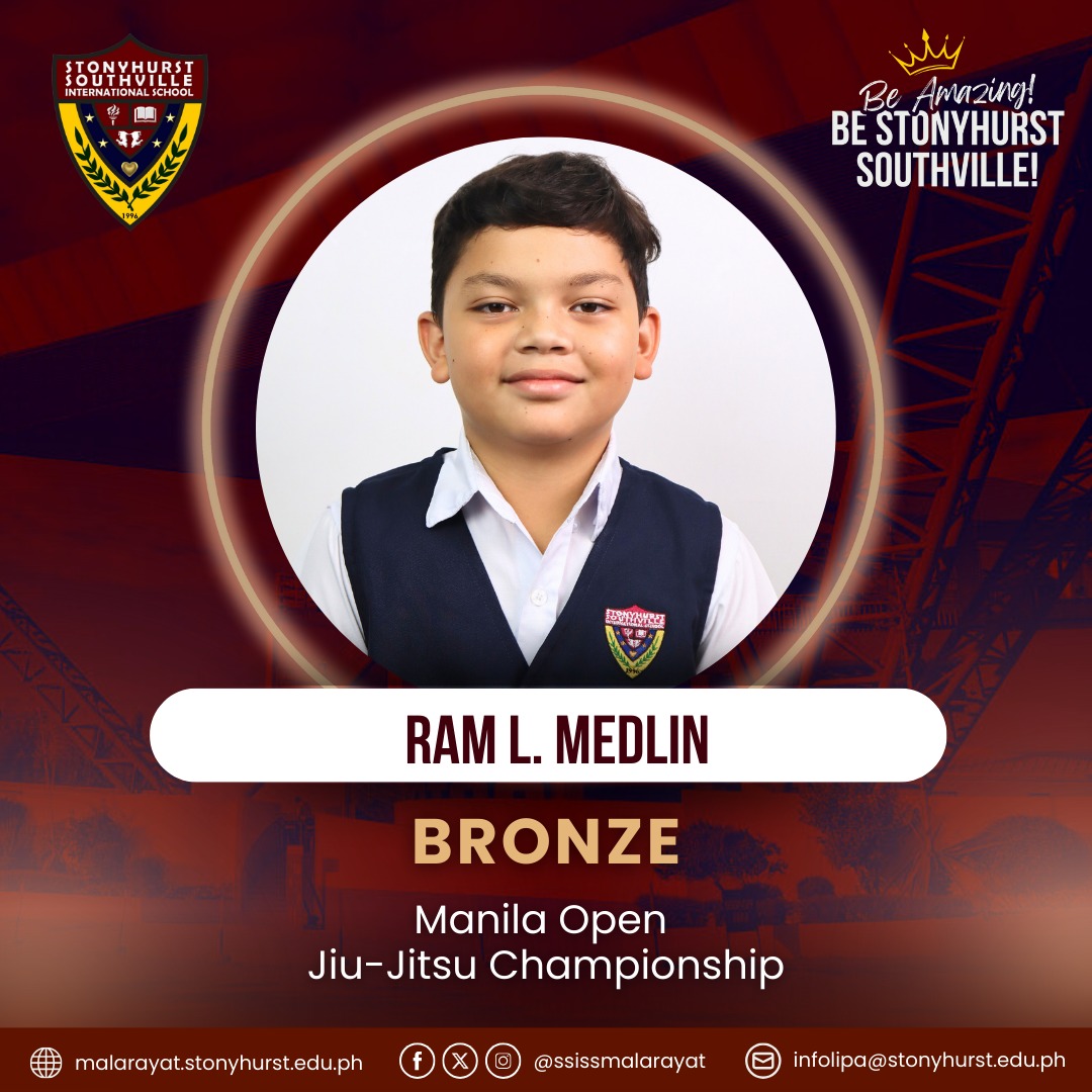 Stonyhurst Southville International School β Malarayat proudly celebrates Ram L. Medlin for achieving a Bronze Medal at the Jiu-Jitsu Championship, demonstrating exceptional skill, discipline, and determination.