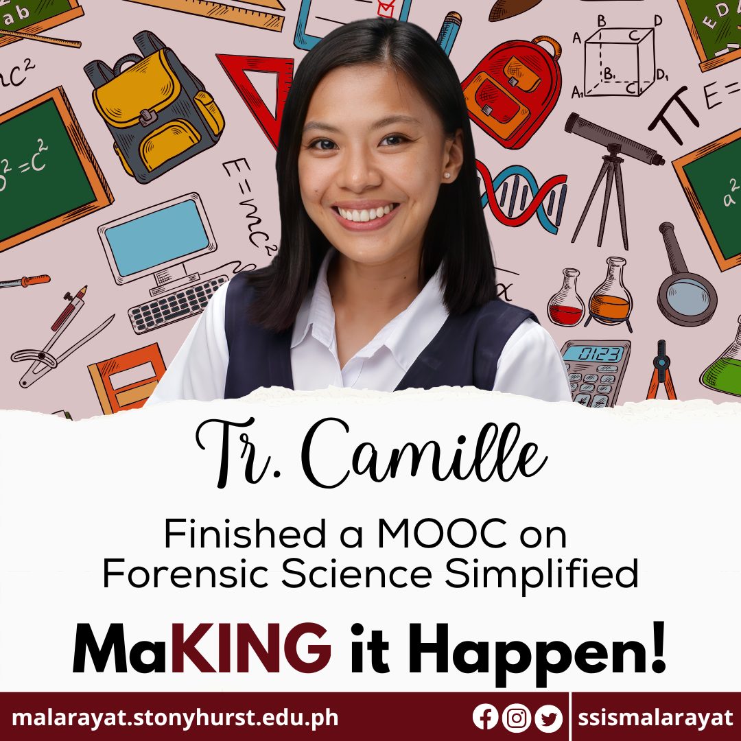 Congratulations, Tr. Camille, for continuing to grow professionally. Through your dedication to expanding your knowledge in forensic science, our students benefit from enriched learning experiences that foster curiosity, sharpen investigative thinking, and inspire a deeper appreciation for the pursuit of truth and justice.