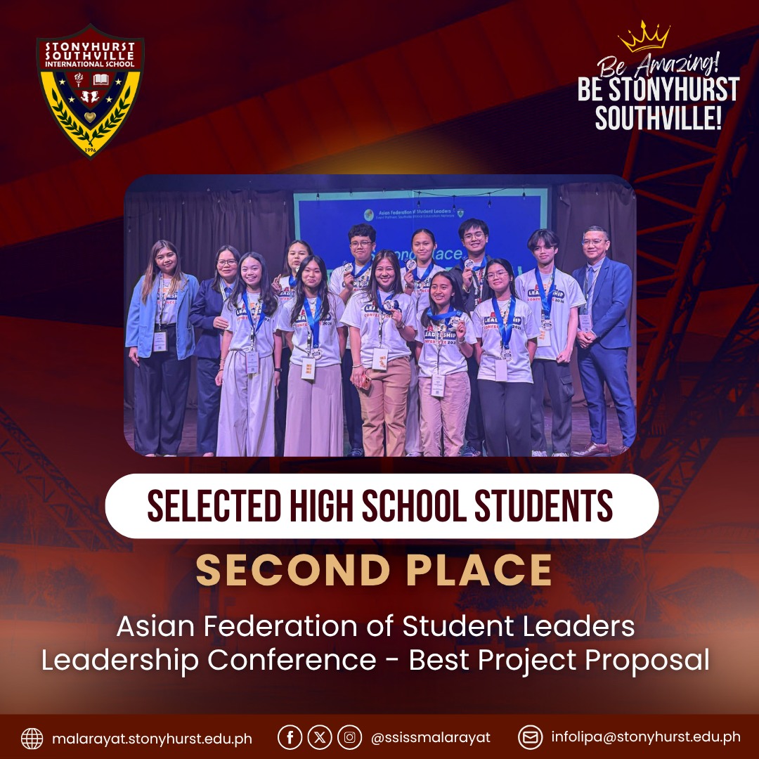 Stonyhurst Southville International School – Malarayat proudly celebrates our outstanding delegates for securing 2nd Place – Best Project Proposal at the AFSL Leadership Conference 2026, organized by the Asian Federation of Student Leaders held at Southville International School and Colleges.