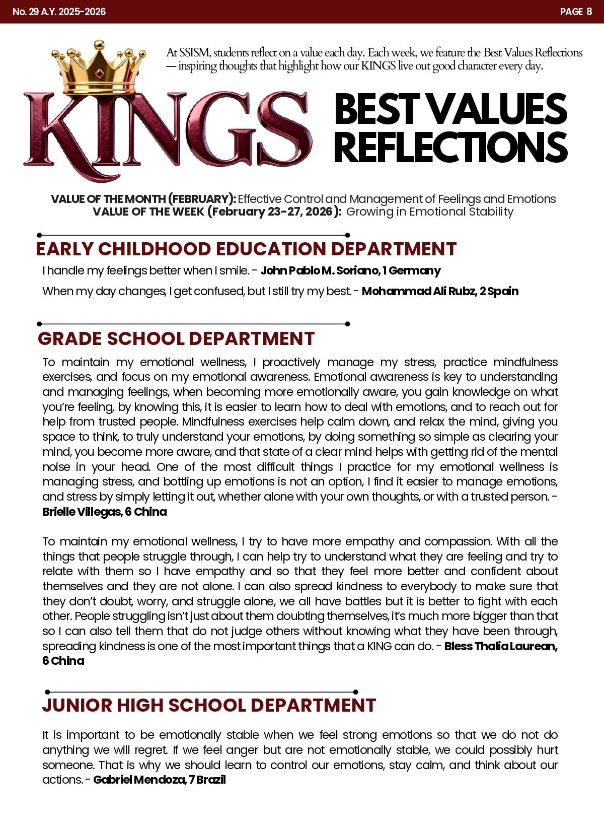 7. KINGS Best Values Reflection