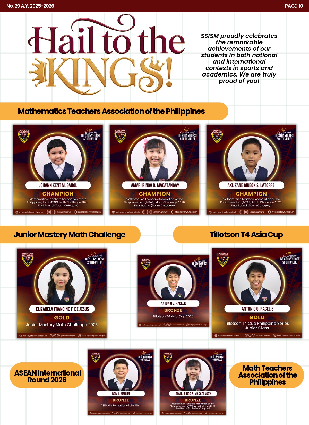 We are delighted to share with you the latest edition of the Students and Parents’ Bulletin (SPB) for Stonyhurst Southville International School – Malarayat (SSISM), SPB No. 29.