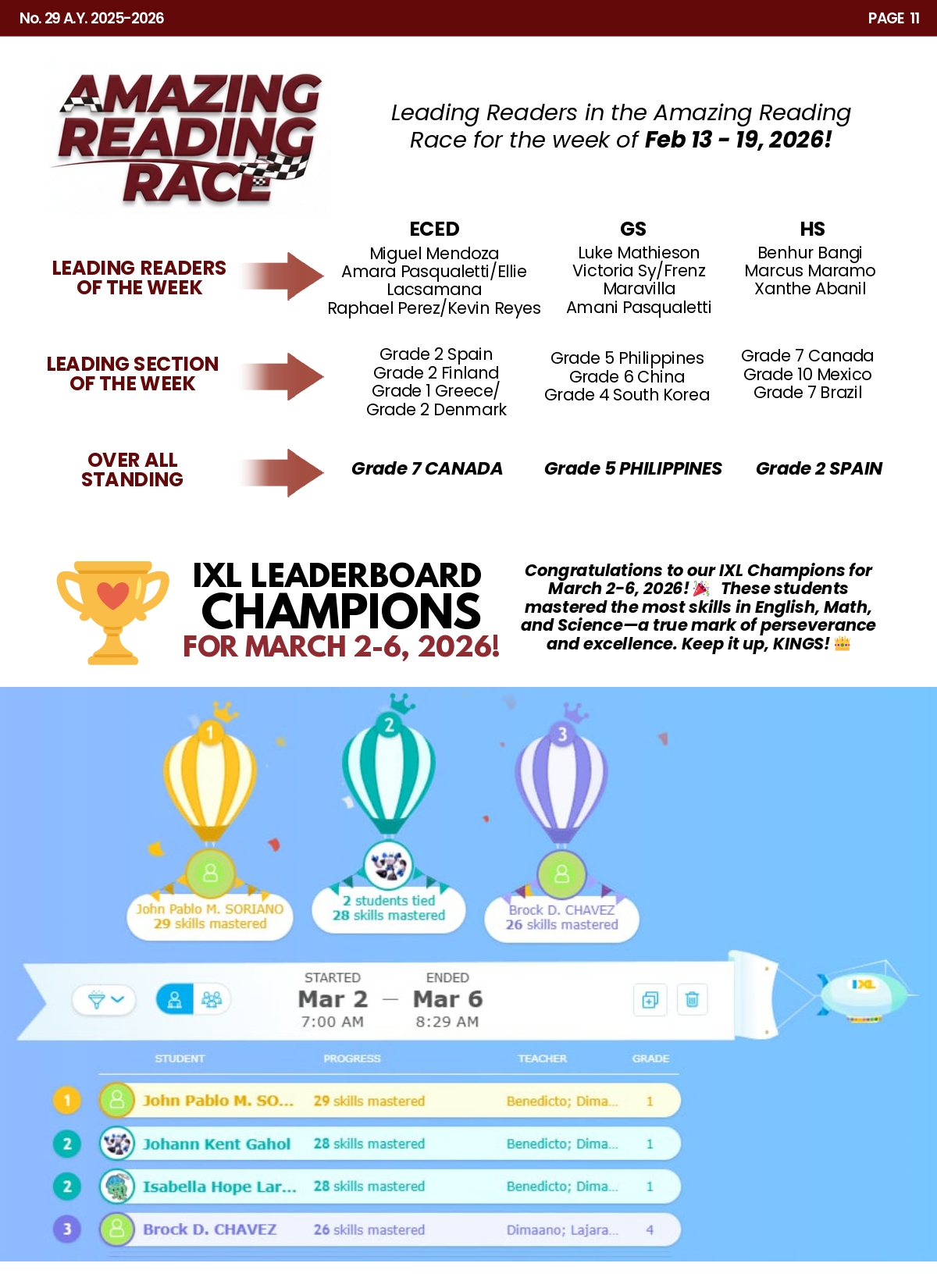 8. IXL Leaderboard Champions