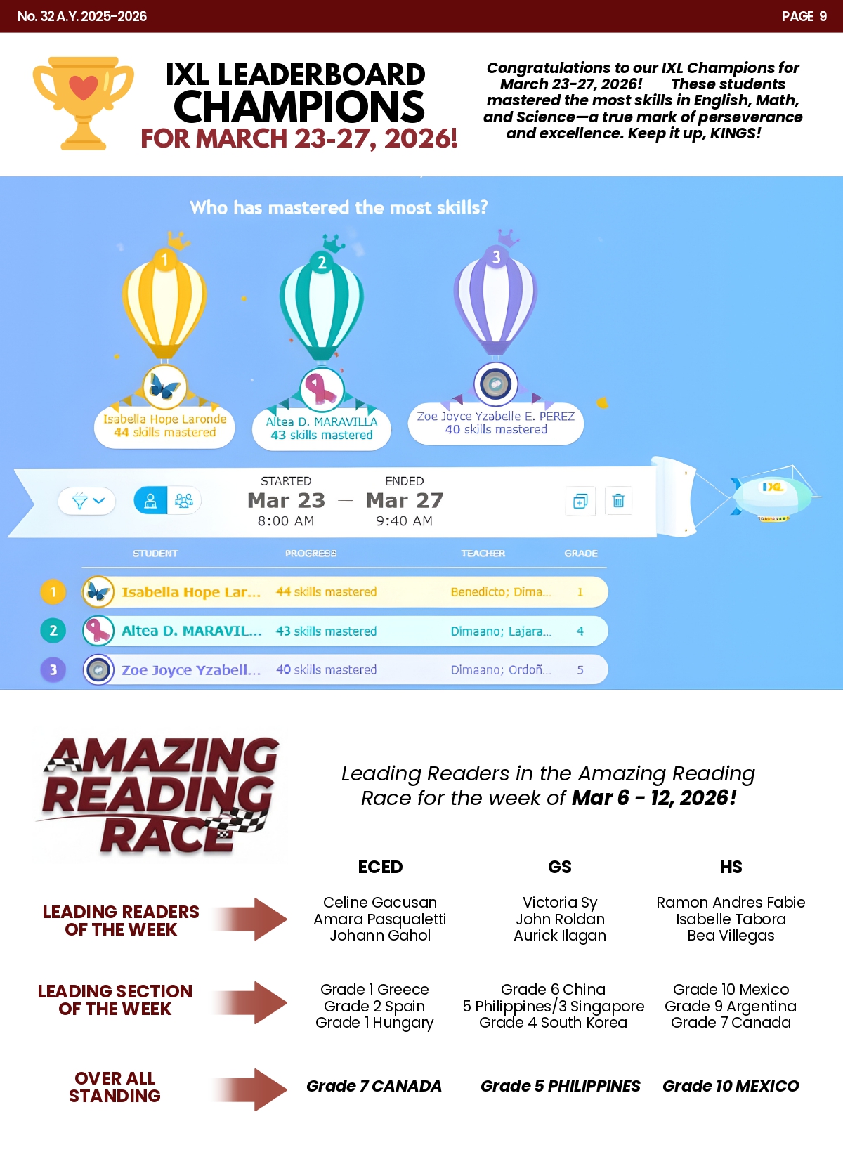 12. IXL Leaderboard Champions
