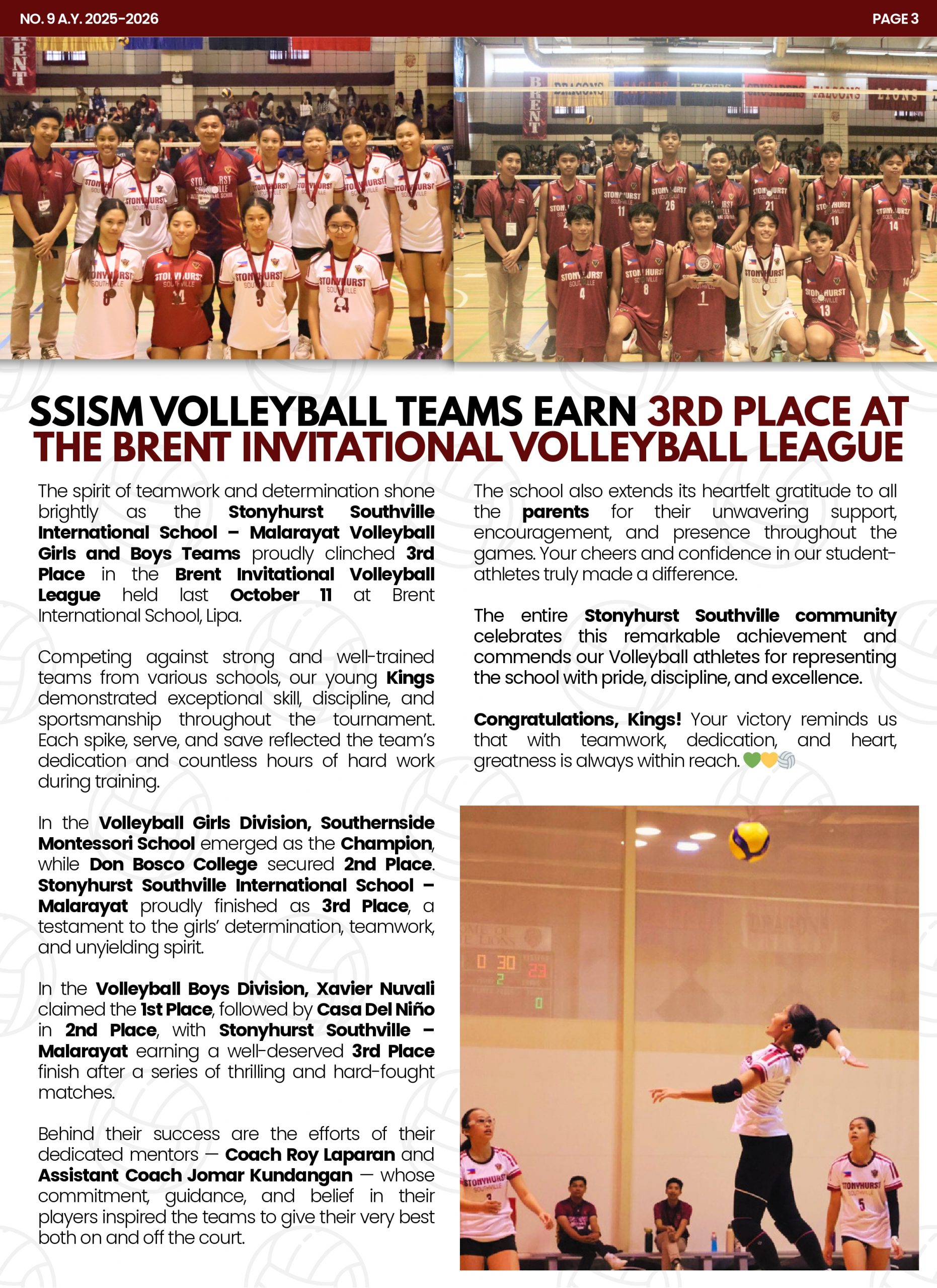 - SSISM Volleyball Teams Earn 3rd Place at the Brent Invitational Volleyball League