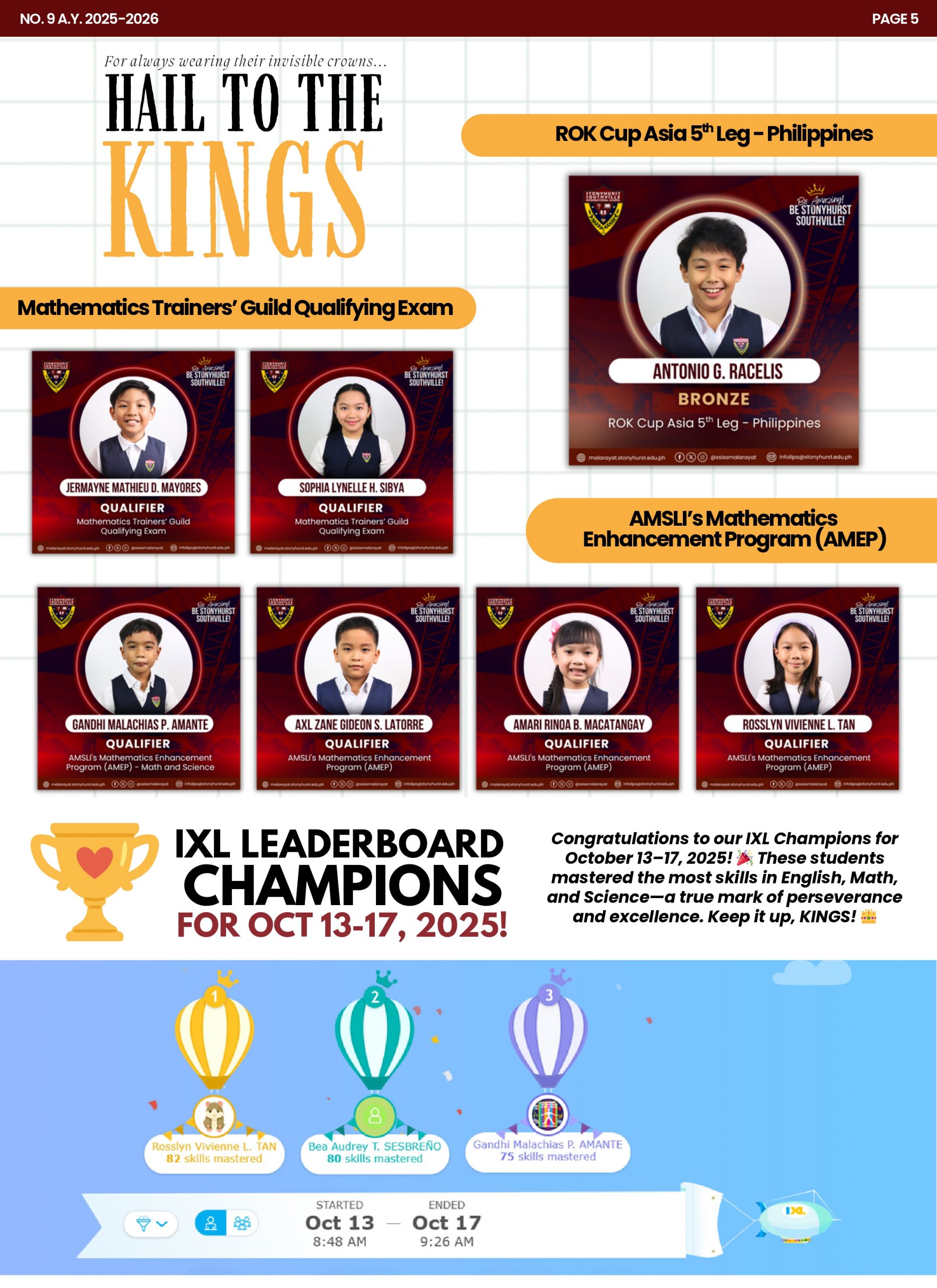 - IXL Leaderboard Champions for Oct 13-17, 2025!