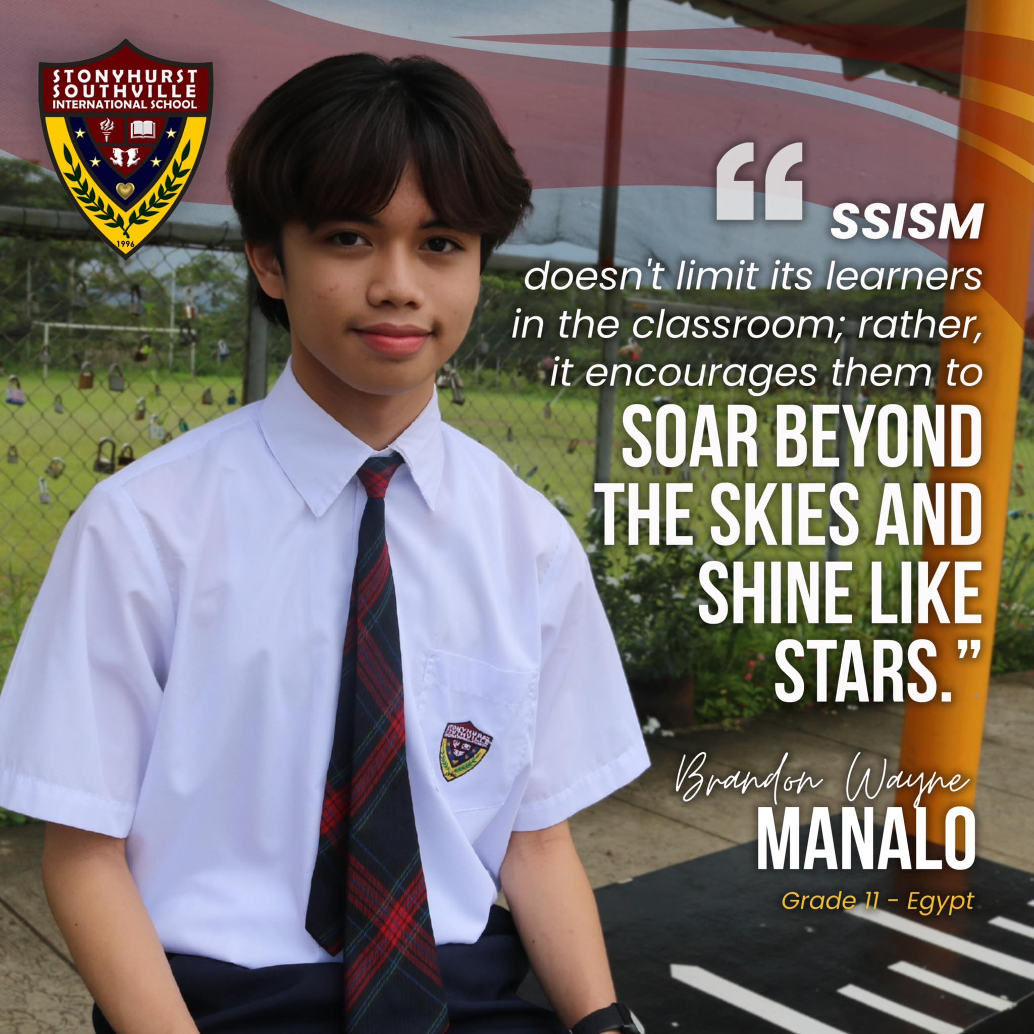 “As a fervently-driven student, I find SSISM more than reliable as I pursue my ambitions. I’m blessed to have this school propelling me toward multiple opportunities, while encouraging me to strive with “no hesitation.” Studying hereโsurrounded by a supportive communityโhas helped me discover the potential I never knew I had. SSISM doesn’t limit its learners in the classroom; rather, it encourages them to soar beyond the skies and shine like stars.” โ Brandon Wayne Manalo